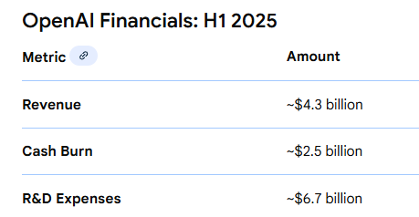 Started as a “non-profit,” OpenAI burns $2.7 for every $1 in revenue. They claim to be accelerating revenues to $20B this year, but that is a doubtful number. Its current valuation of $500-$600B, making it the most valuable private company ever, has raised eyebrows about what the next financing avenue might be to sustain its cash burn. And so it reportedly began talks to IPO at $1T. These numbers keep growing, yet no one seems to be asking the basic questions. What is the ROI on the cash burn, and what if they can’t raise the cash and don’t see a clear path to profitability? We are talking about massive shareholder value destruction here, and soon, debt holders too.